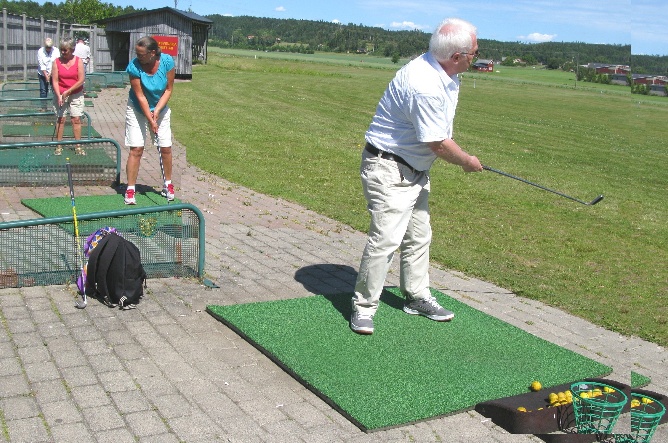 Lionsmedlemmar fick prova på att slå några träningsslag vid Uddevala Golfklubbs träningsbana.