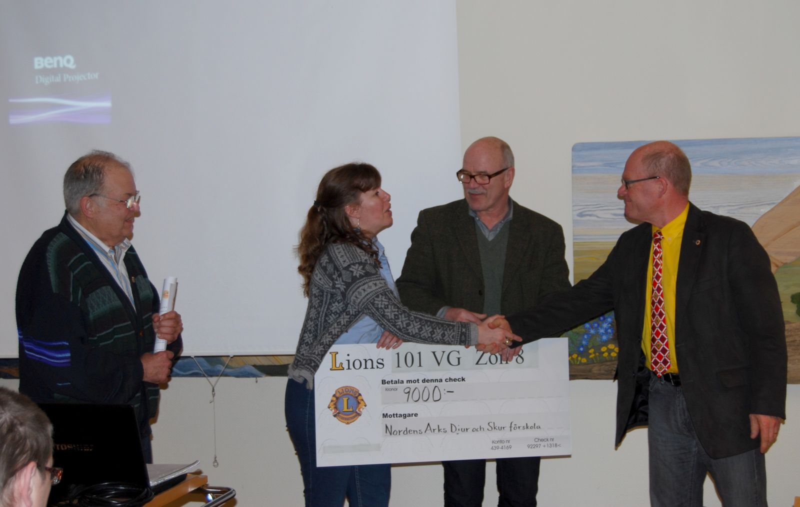 Lena Arnmarker Högberg tar emot gåvorna från Lions Club Uddevalla.