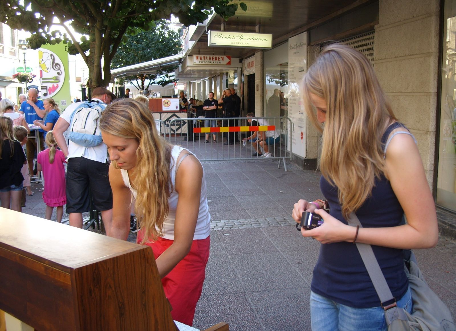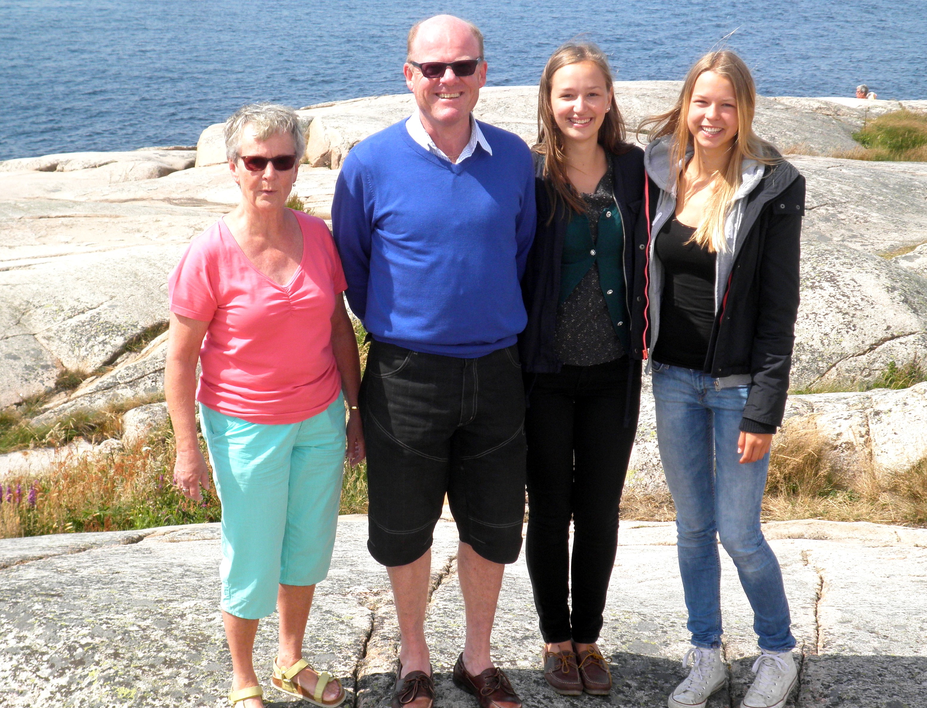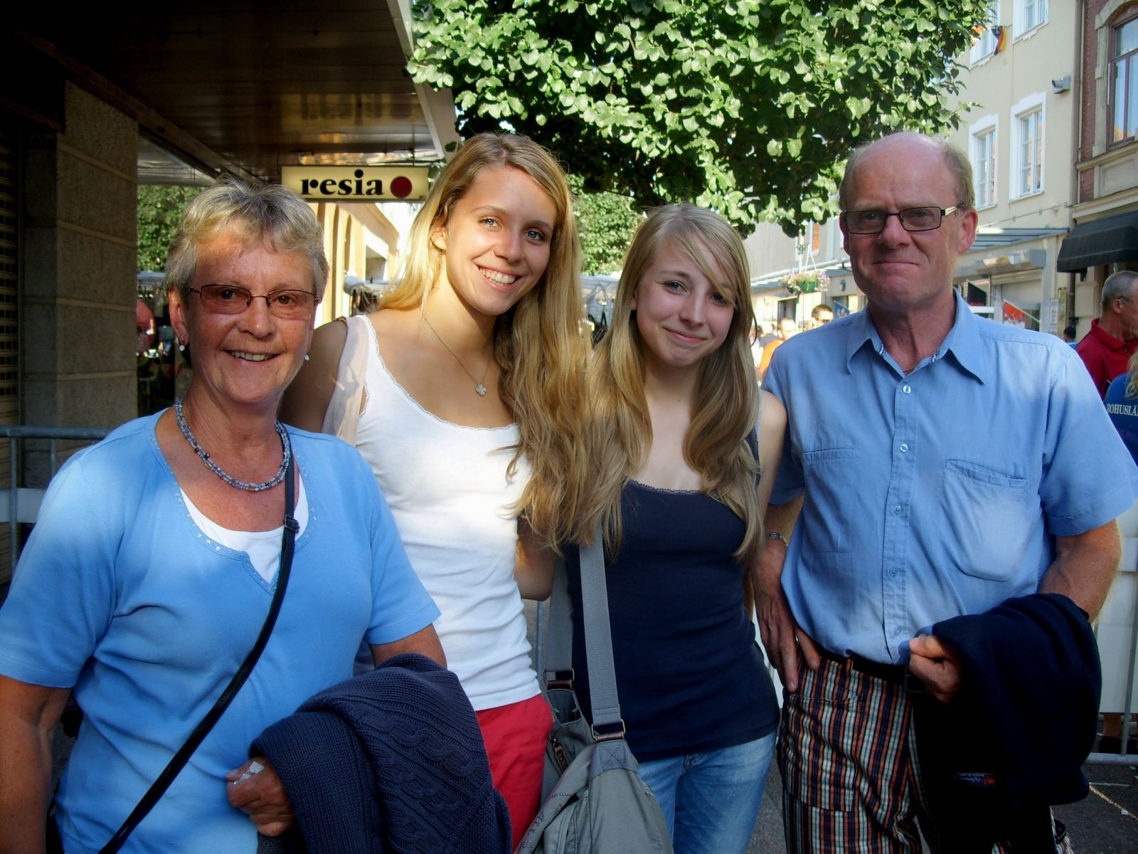 Bilden visar värdfamiljen Solveig Andersson och Kjell Olsson som, tillsammans med ungdomarna fr.v. Kristina Schirmer från Österrike och Stefanie Könemann från Tyskland när de besökte Uddevallakalaset torsdagen den 26/7.Kristina visade också sin förmåga att spela piano utanför Mortens Krog på Kungsgatan.Detta uppskattades av förbipasserande festivalbesökare.(Bild nedan)